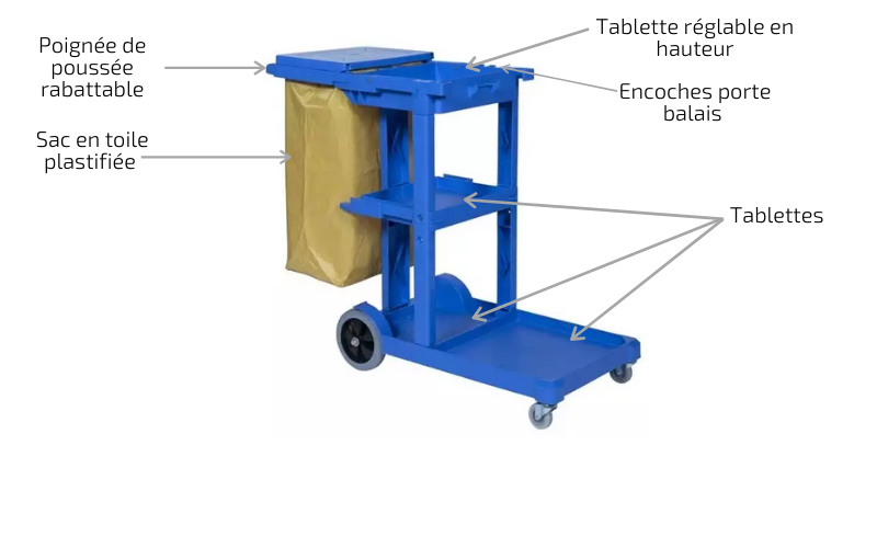 Multifonction, pratique et maniable, ce chariot de ménage accompagnera vos agents d’entretien dans leur travail.Il peut se compléter avec un single bucket, une mop, un racleau…etc.En savoir plus